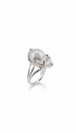 A jewel that celebrates natural imperfection as a symbol of authenticity. This open ring, plated in silver, holds a unique baroque pearl.