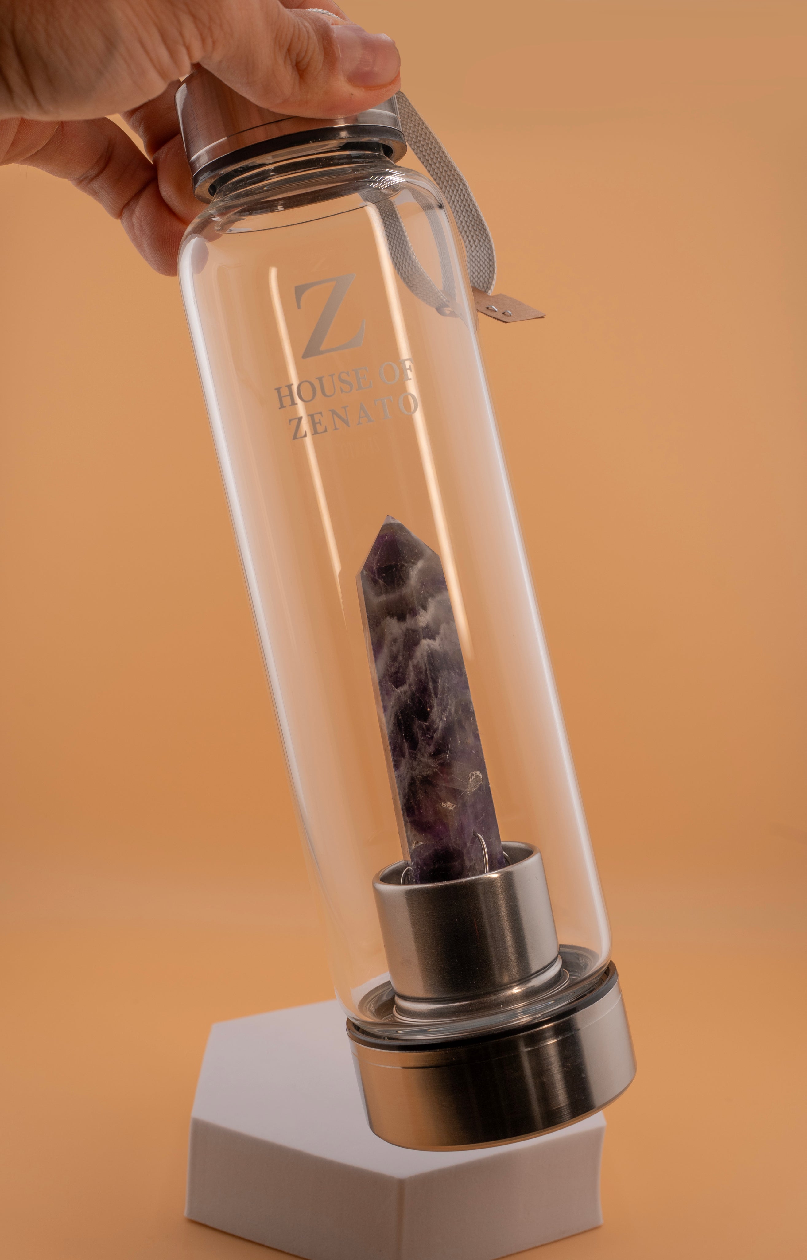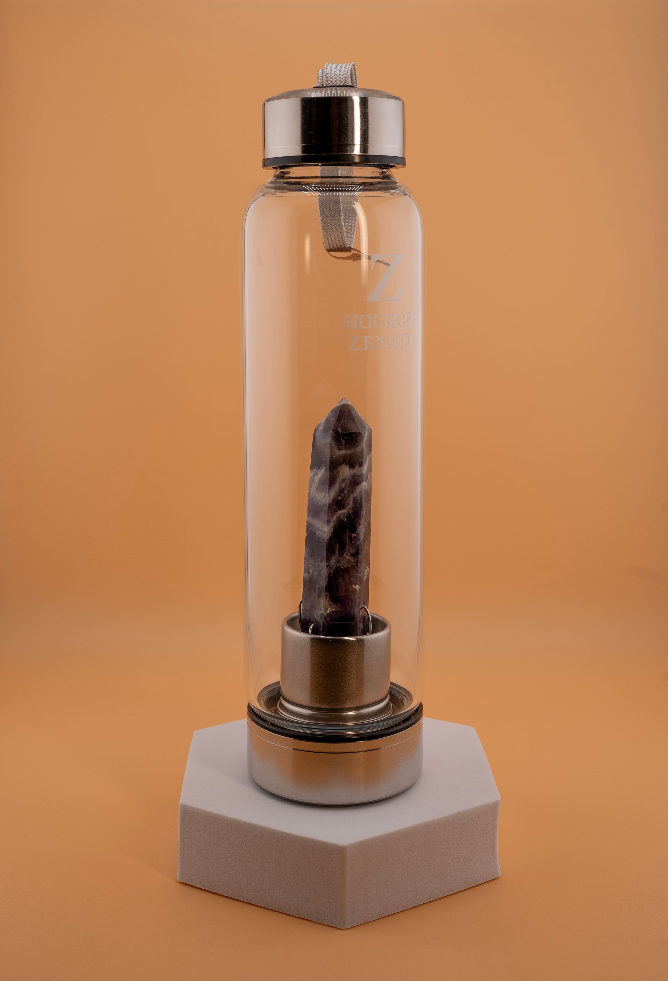 Inspired by bestselling designs like VitaJuwel, G Lacce, and Voltlin gem-water bottles bamford.com+15vitajuwel.us+15thesourceh2o.com+15, our bottle promotes mindful sipping and aesthetic appeal. Amethyst is known for its ability to foster calmness, emotional balance and intuitive clarity—widely featured in crystal-infused waterware callistoteahouse.com+1auramarket.ca+1.