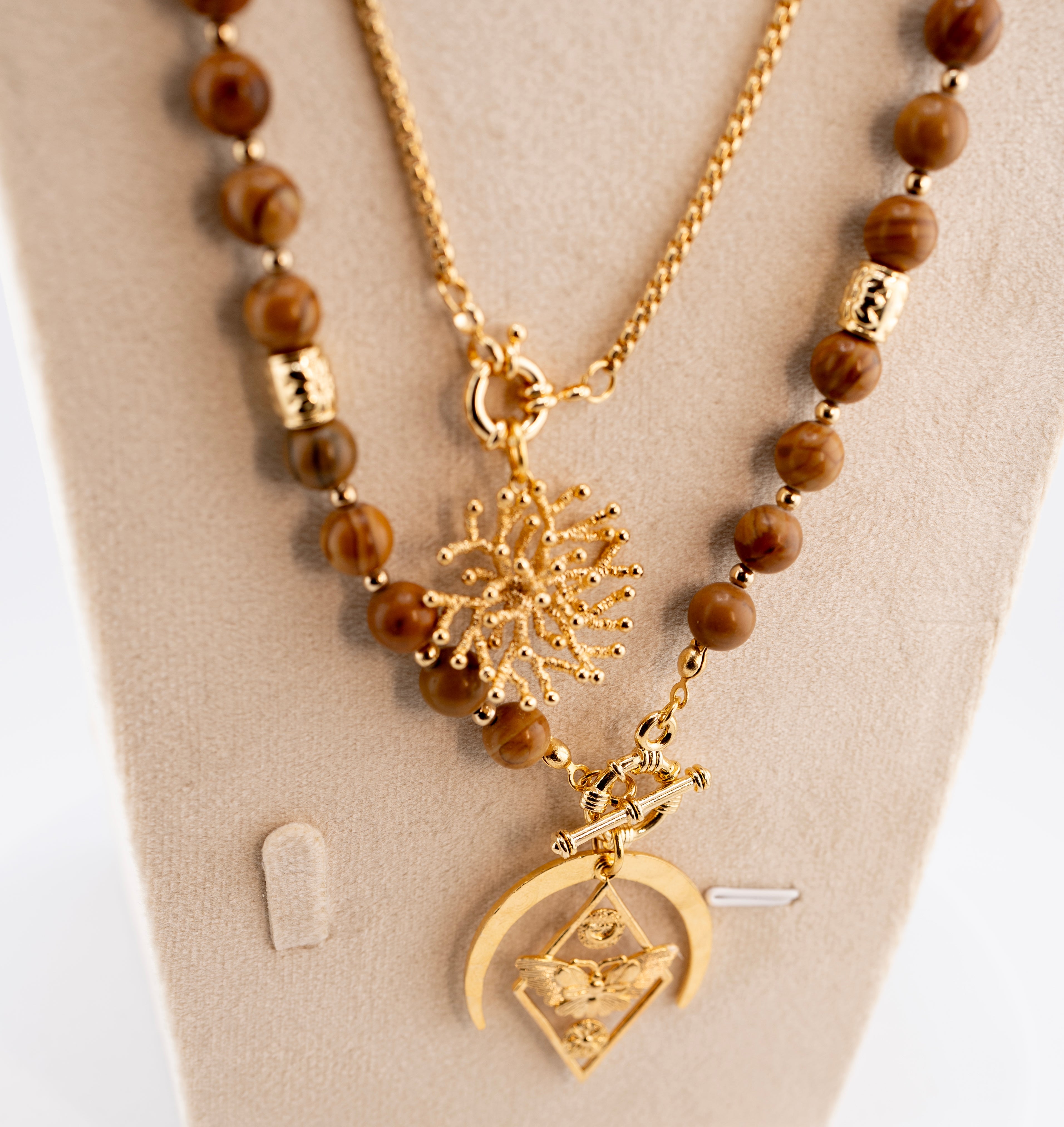 Elevate your style with this handmade natural wood bead necklace, featuring a striking gold-plated African pendant. Carefully crafted to reflect tribal elegance, this ethnic piece blends tradition with contemporary fashion. Ideal for spiritually inspired individuals, cultural lovers, and fashion-forward men.