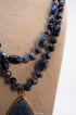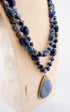Lapis Lazuli Double Strand Necklace with Teardrop Pendant – Natural Blue Gemstone Statement Jewelry for Women – Handmade Boho Healing Crystal Necklace