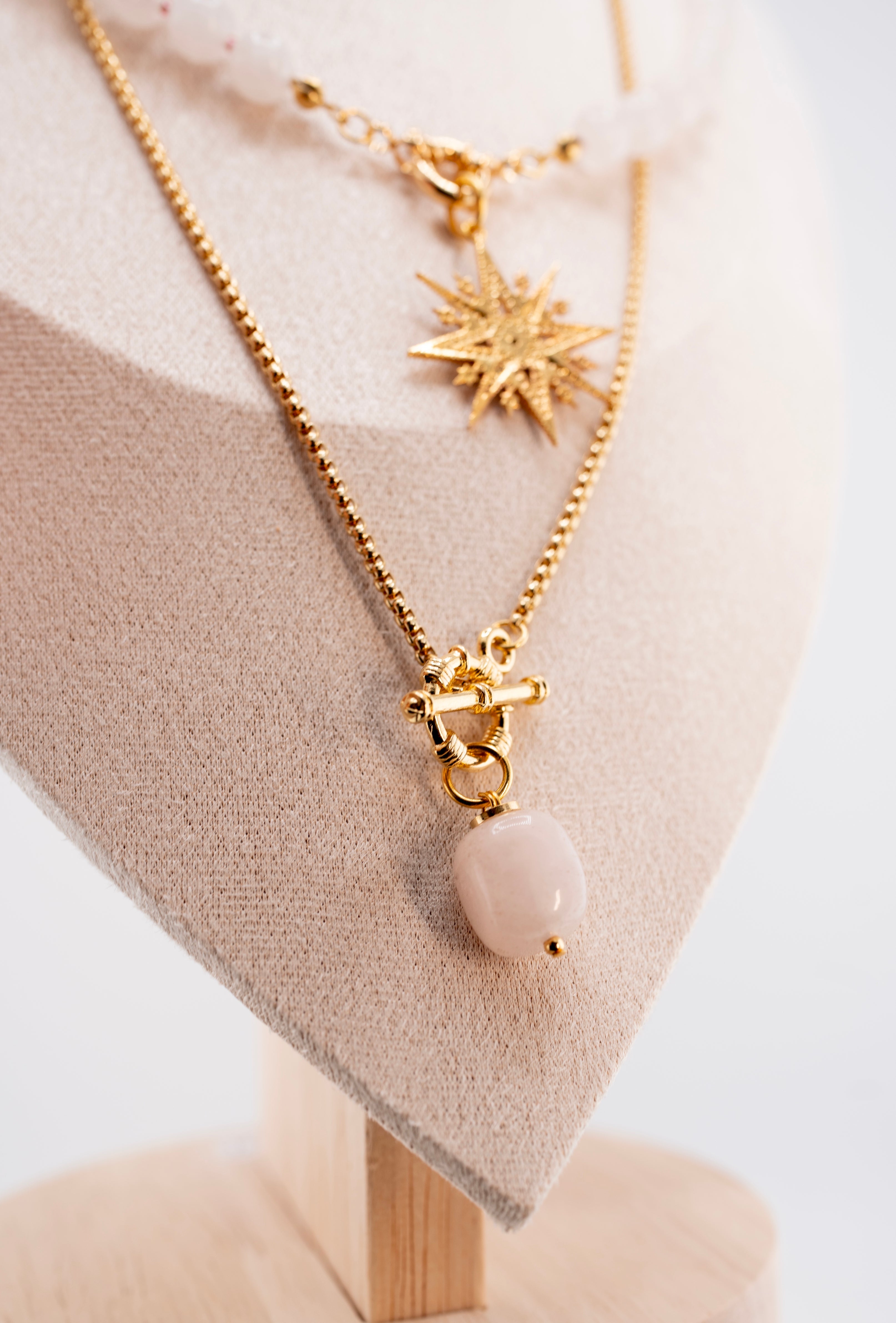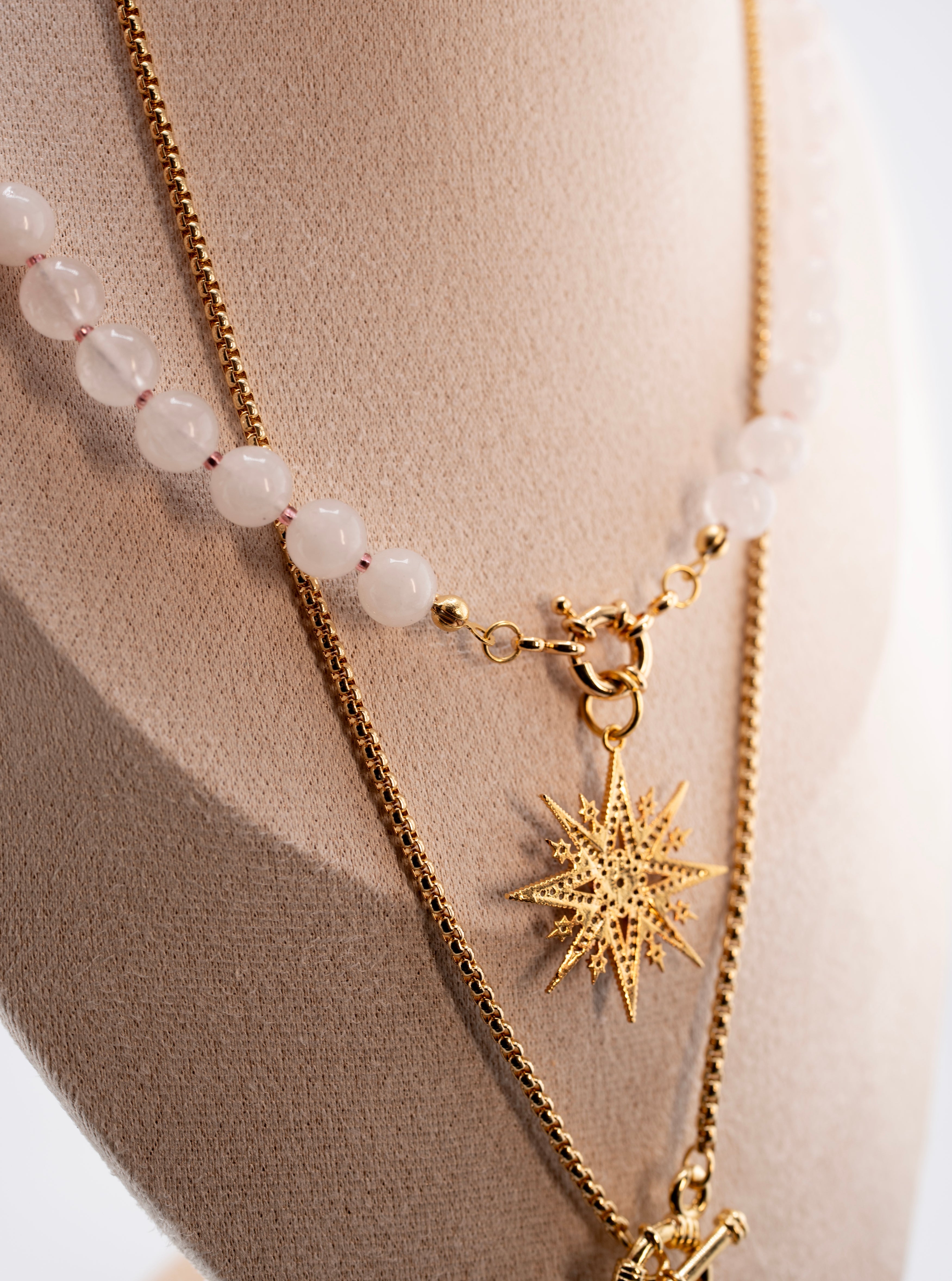 Subtle, serene, and timeless – this handmade pearl-colored beaded necklace is a celebration of elegance and inner peace. Crafted with smooth, semi-precious gemstone beads that shimmer with a soft, natural pearl tone, it evokes clarity, balance, and calm energy.