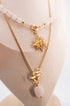 At its center lies a polished stainless steel pendant, silver-toned and resistant to rust or fading. With its clean design and spiritual undertone, it adds symbolic strength to the necklace’s gentle presence.