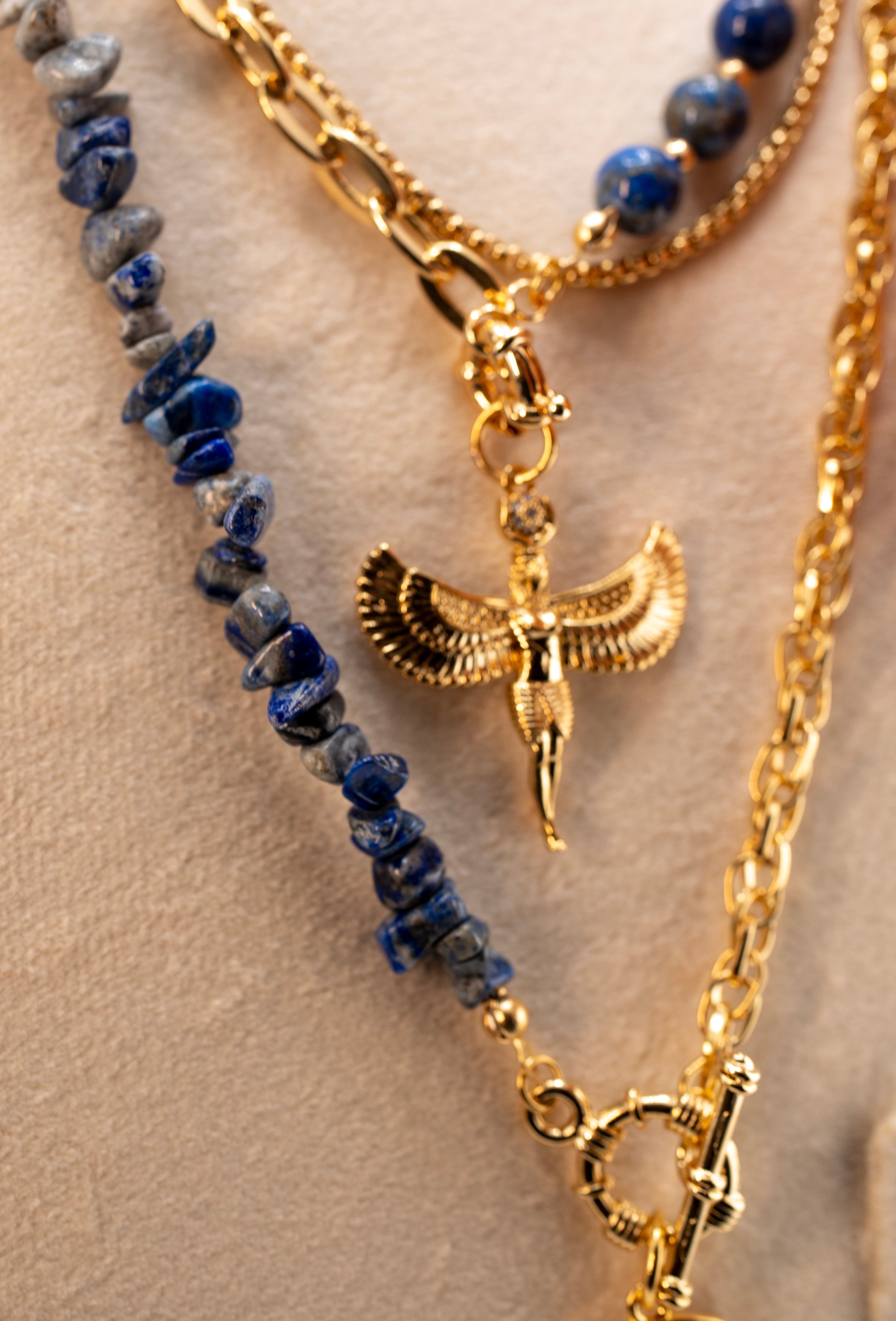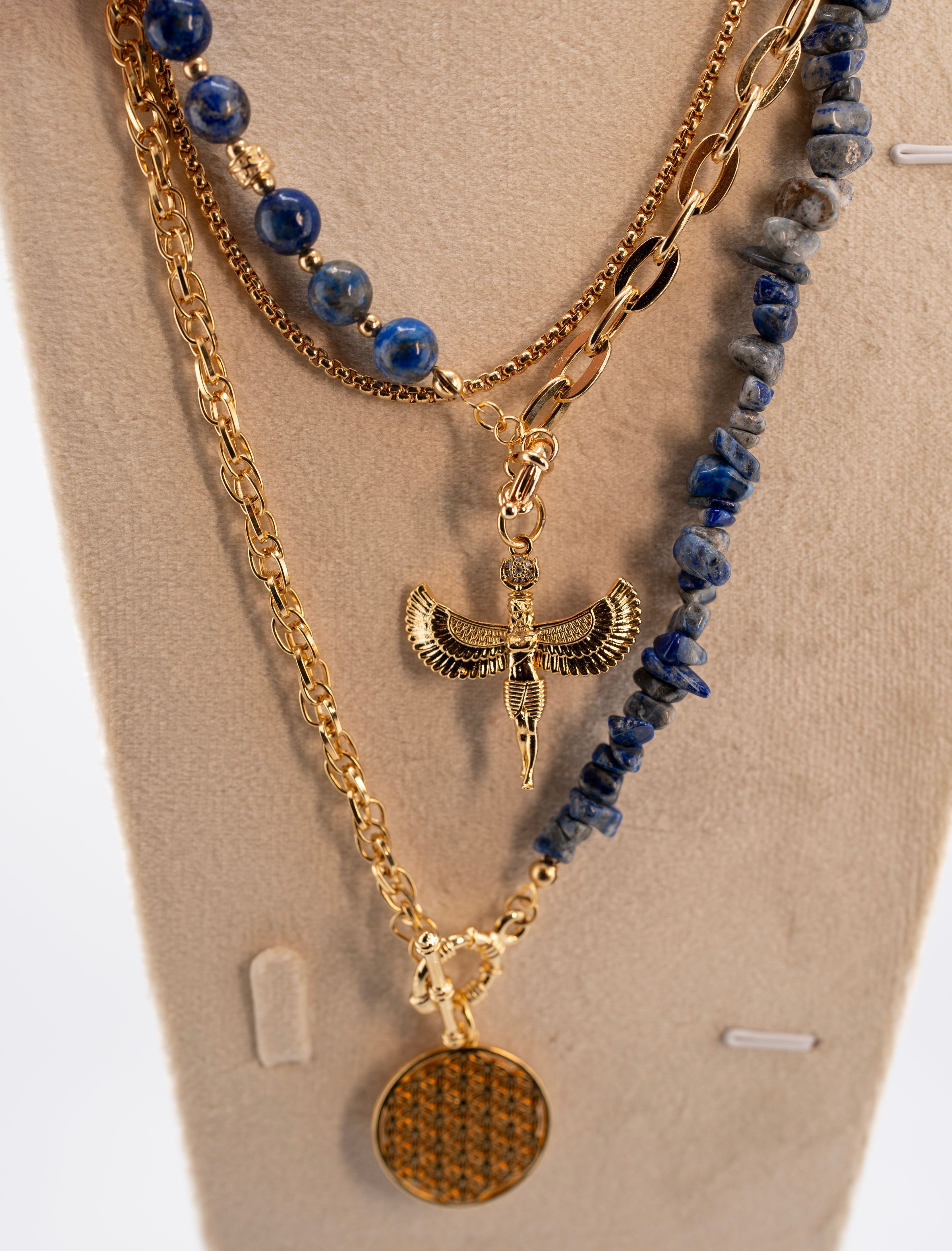 Grounded, bold, and timeless – this handmade beaded necklace blends natural elements with cultural depth. It features dark brown and earth-tone gemstone beads, each carefully selected for their natural texture and subtle variation. The result is a warm, mysterious, and refined aesthetic.